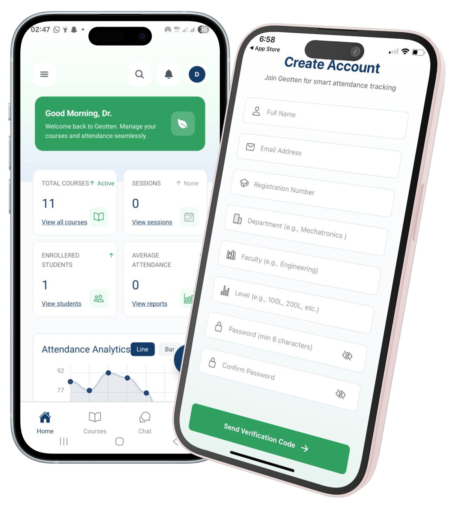 Geotten provides 99% accuracy in attendance tracking through the combination of biometric authentication and GPS location verification. This dual-layer security prevents proxy attendance and ensures only authorized students can mark attendance from the correct location.